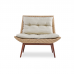 Poltrona Aurora, Designer Daniela Ferro. A linha é composta por poltronas e sofás. Pés em madeira jequitibá, concha superior em alumínio revestido com fibra sintética ou natural. Almofadas soltas, espuma D26. Fibra padrão desta linha fita 7mm. A820 L920 P820.