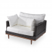 Poltrona Sami. Designer Daniela Ferro. A linha é composta por poltronas e sofás, mesas de centro e laterais. Estrutura dos pés em madeira jequitibá, concha em alumínio revestida em fibra natural,sintética. Almofadas soltas, espuma D26. A850 L1200 P1000.