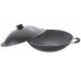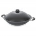 Panela wok com revestimento interno e externo em antiaderente Starflon, devido ao revestimento antiaderente os alimentos não grudam, proporcionando facilidade na limpeza. Possui tampa de alumínio. Proporciona um cozimento rápido e uniforme. Pode ser utilizada no fogão a gás, elétrico e vitrocerâmico e pode ir à máquina de lavar louças.
